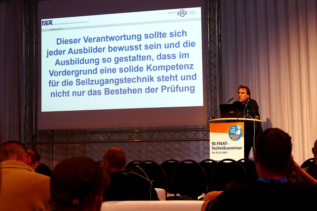 From the years ago we successfully established a special format of events: Every year in autumn our association is organizing the FISAT Technical Symposium. The focus is on Occupational safety and health in rope access and work at height. Our last events took place in Dresden, Essen, Feuchtwangen, Erfurt and Berlin. Guiding themes were e.g. »The human factor«,»Confined space« and »Personal protective equipment against falls from a height«.